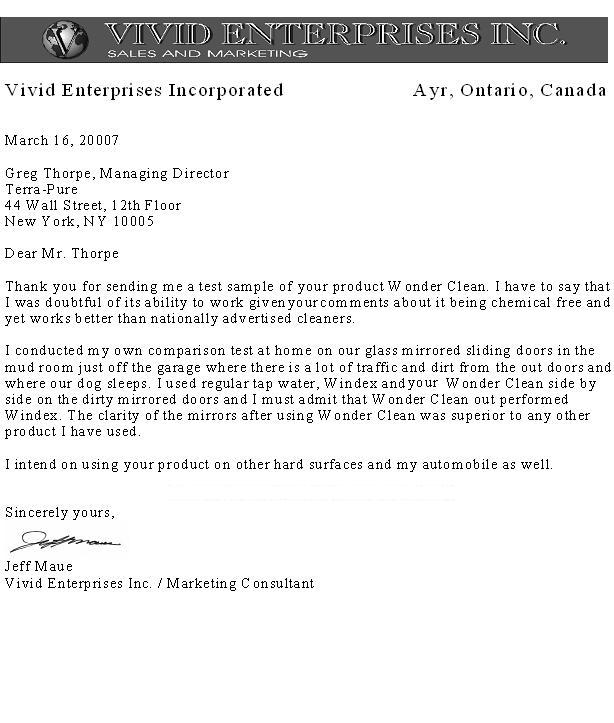 Jeff Maue Toronto, Canada Jeff lives in a somewhat rural section of Toronto and has an active lifestyle with his family and dog. Jeff wanted to test Wonder Clean himself, so he did his own test on his sliding mirrored doors in his garage which gets pretty dirty from all the family traffic in and out, and the dog. Using Wonder Clean to clean part of the door, and side by side using the most popular nationally advertised glass cleaner on the same door, and plain water as a control, Jeff perform his own test by cleaning one-third of the doors with each. Jeff reported that Wonder Clean noticeably outperformed the nationally advertised glass cleaner. ___________________________________________________________________________________________________________________________________ |